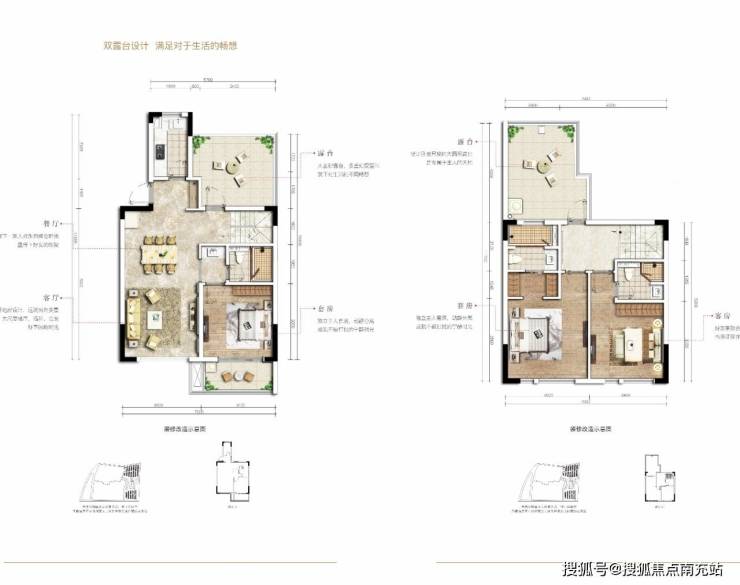 上叠产品同样亮点十足。其建筑面积为 66 平方米,实际可得面积达 132 平方米,室内赠送率高达 95%。此外,还赠送屋顶露台与室外露台,总面积约 36 平方米。站在这观山露台上,能够登高望远,将美景尽收眼底。该上叠产品主力成交价格区间在约 97~130 万。