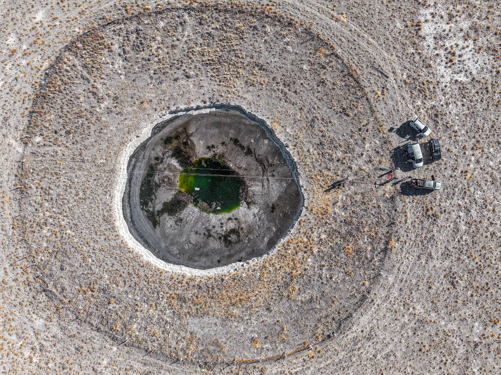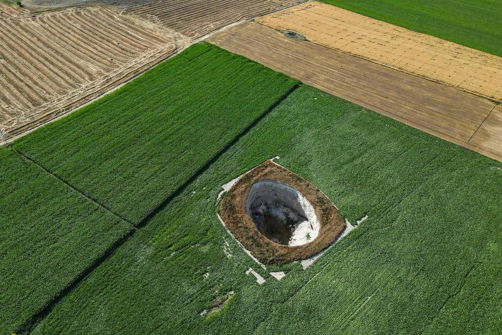 土耳其科尼亚省的田野中央形成的一个天坑。科尼亚近年来由于干旱加剧和地下水过度开采用于灌溉,天坑数量显著增加。视觉中国 图