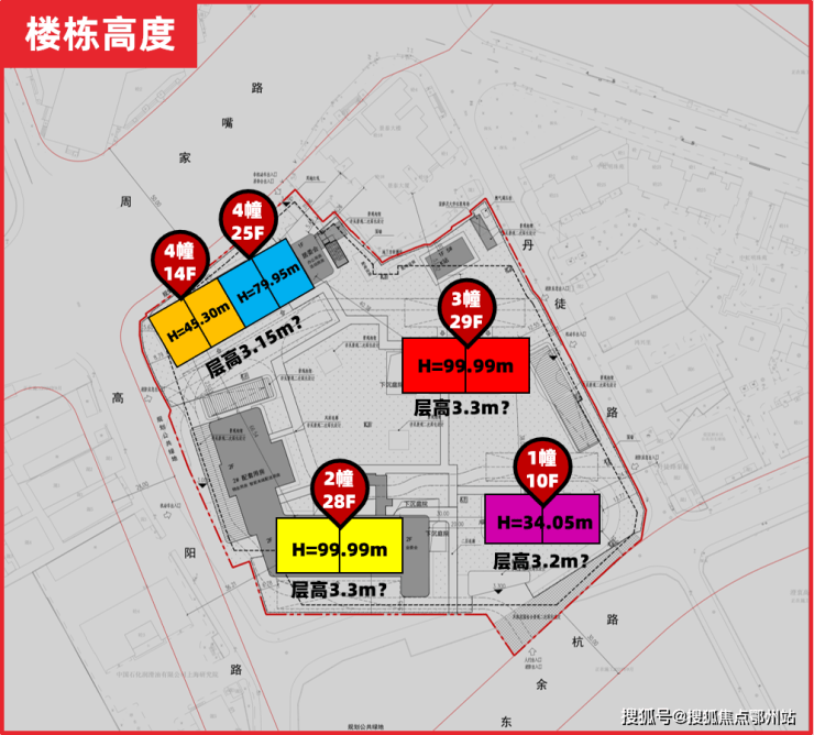 5.层高条件十分优越,综合各个楼栋层数以及建筑高度,再刨去女儿墙及架空层,独家君初步预估:1幢约3.2米,2幢与3幢层高约3.3米左右,4幢约3.15米.
