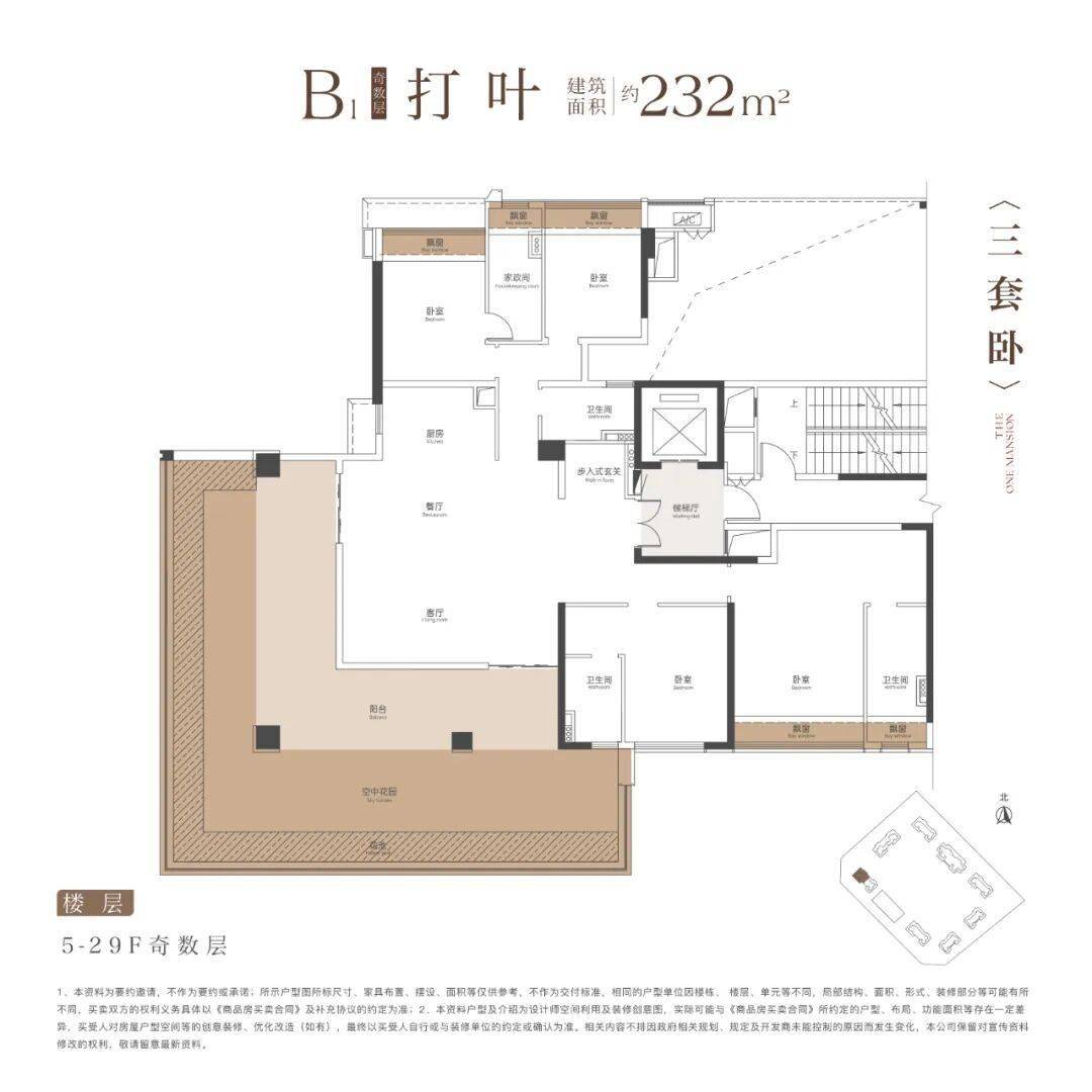 建面约232㎡:得房率超125%,采用L型设计,大概有70㎡空中露台,270°环幕视野。
