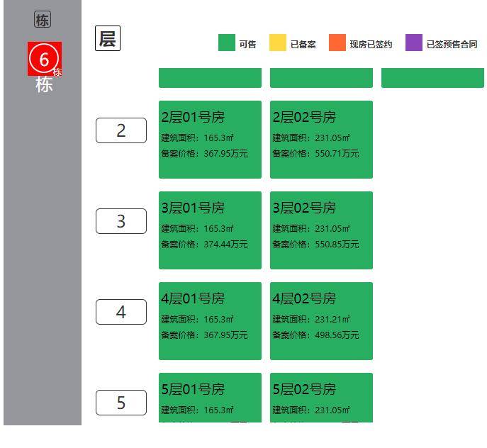 具体来看,单价最低为6栋2层02号房,建筑面积约197.02㎡,价格约11676元/㎡,总价为230.05万元。