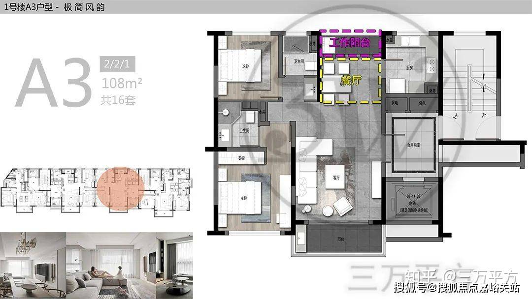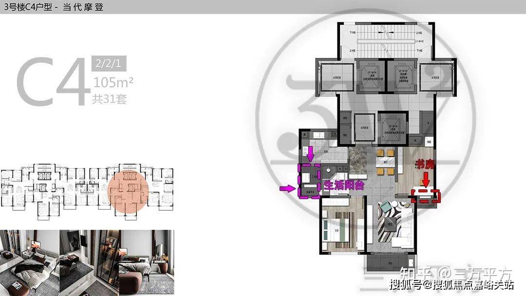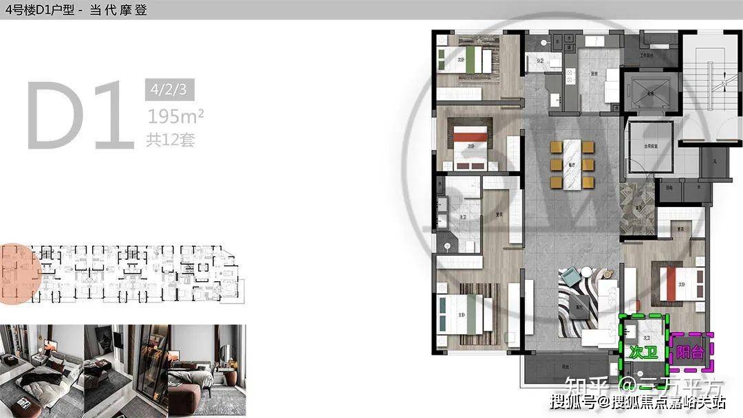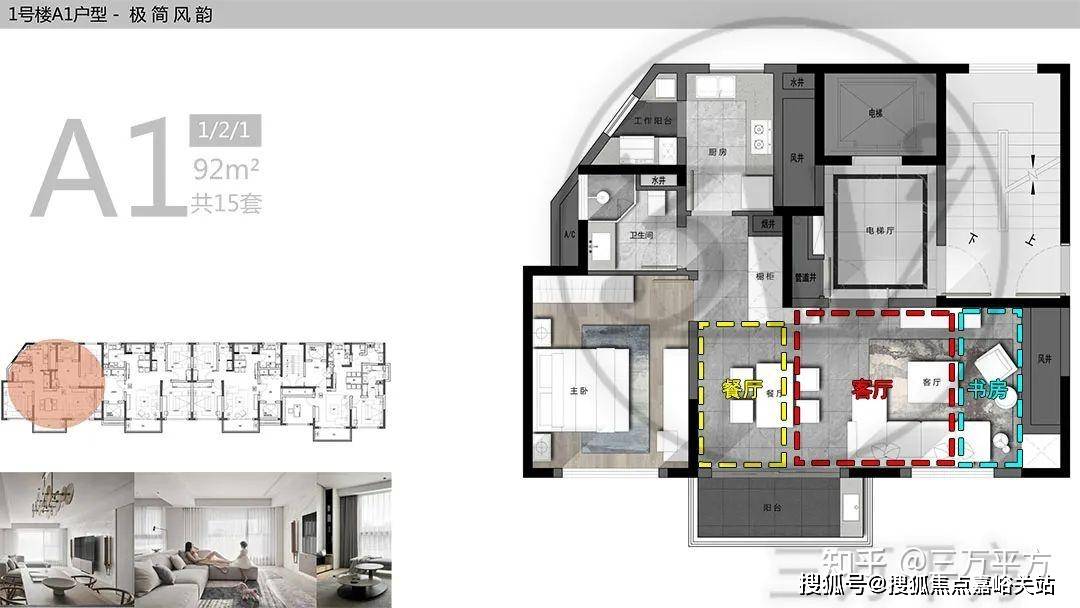 绝大多数户型的阳台和客厅是等宽的,没有太多亮点;餐厅的位置比较深入,采光条件较差;部分中户户型的主卫或者书房窗户开向凹槽,通风采光性能较弱。具体看每个户型的详细分析。