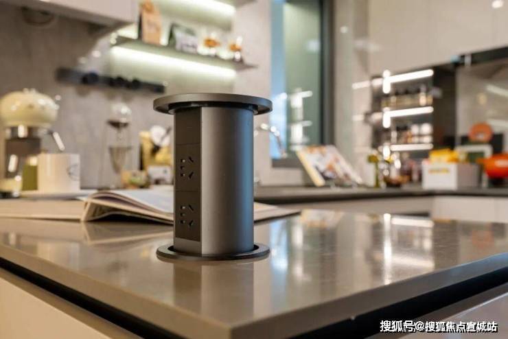 仔细看,厨房的岛台上还放置了一个升降插座!现在看让人眼前一亮,而未来的生活你会深深感受到它有多么实用!