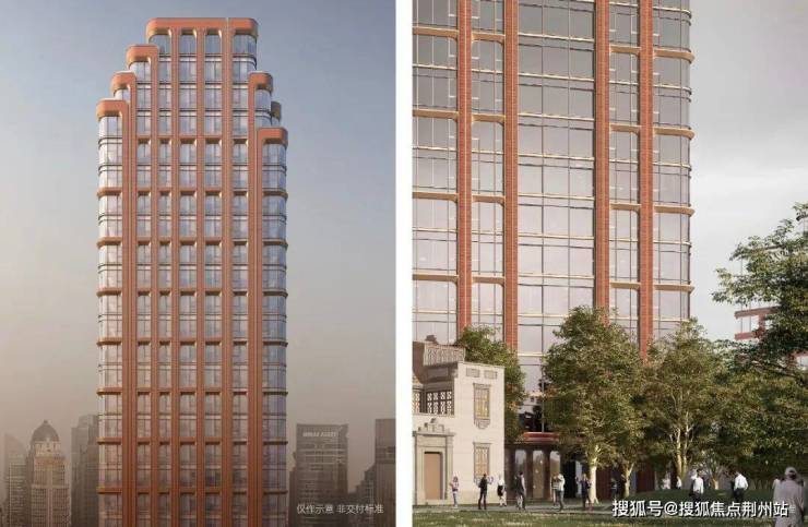 用ArtDeco常用的竖向线条来解决高层建筑的挺拔感、用红色陶板来勾勒出海派老洋房的红砖意象.
