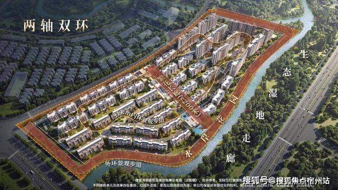 而且项目整个地块三面都被绿地与河道包裹,尤其是项目东侧,公共绿地、滨河景观带、城市生态走廊此地排列,天然具备构建多层次景观视域的条件。