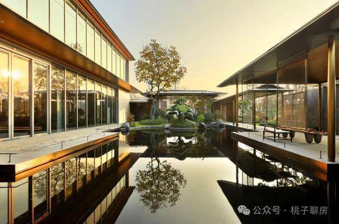 项目以现代审美和设计手法,提取中式美学造极时代的宋式美学,排屋、叠墅立面首层采用大面积淳如玉釉的白色石材,二层及以上立面以大量金色勾边营造,古铜深色作为檐口插色低调内敛而富有华贵意蕴建筑
