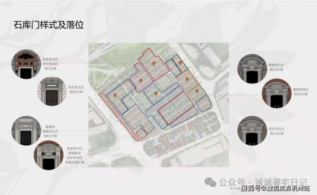 七坊、三十二弄、七大石库门串联起7大组团,八个不同规制的坊门,散落于组团之间,营造出了归家动线上的连续仪式